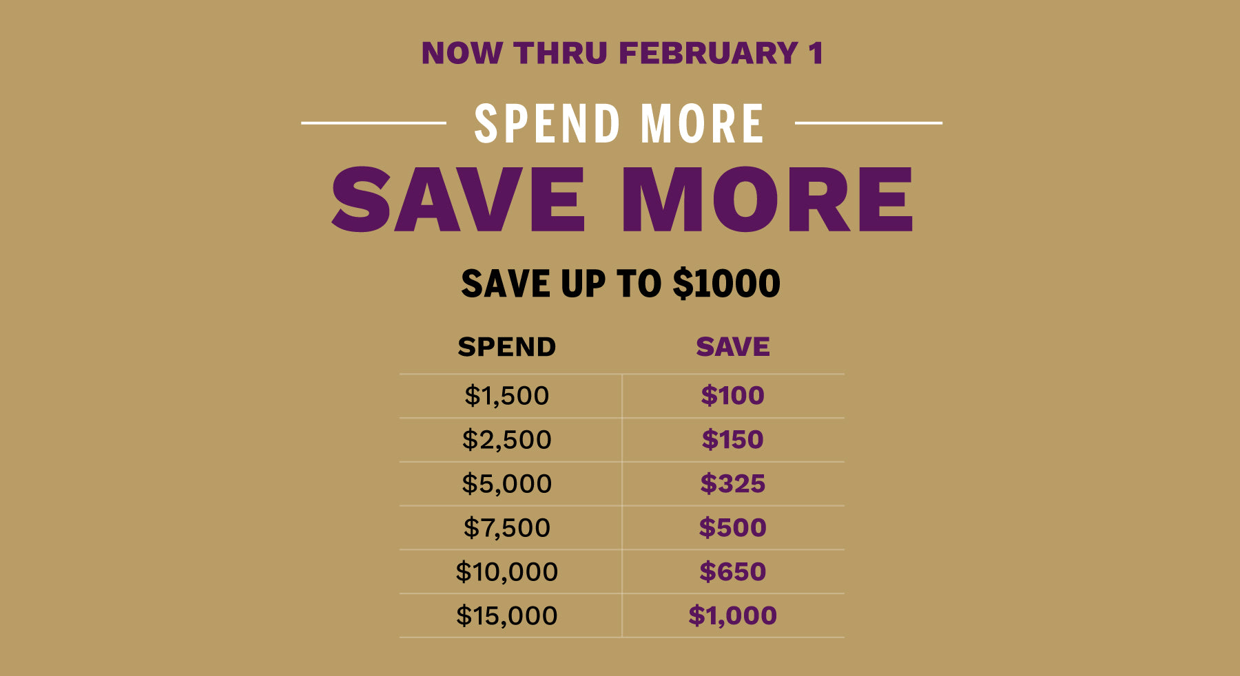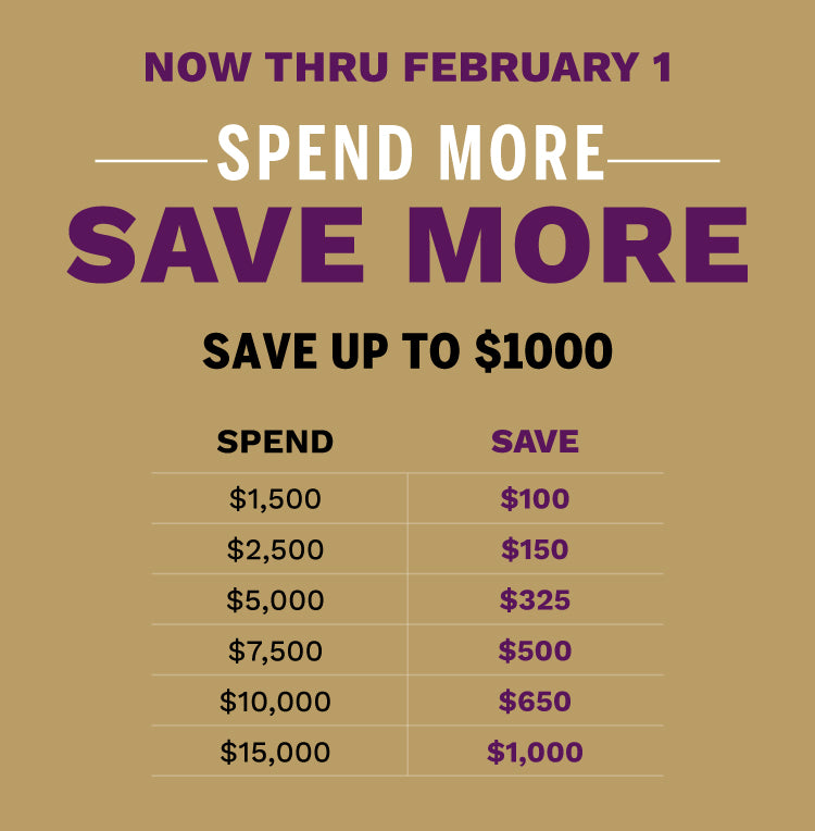Spend More-Save More Event offers expire 2/1/26.