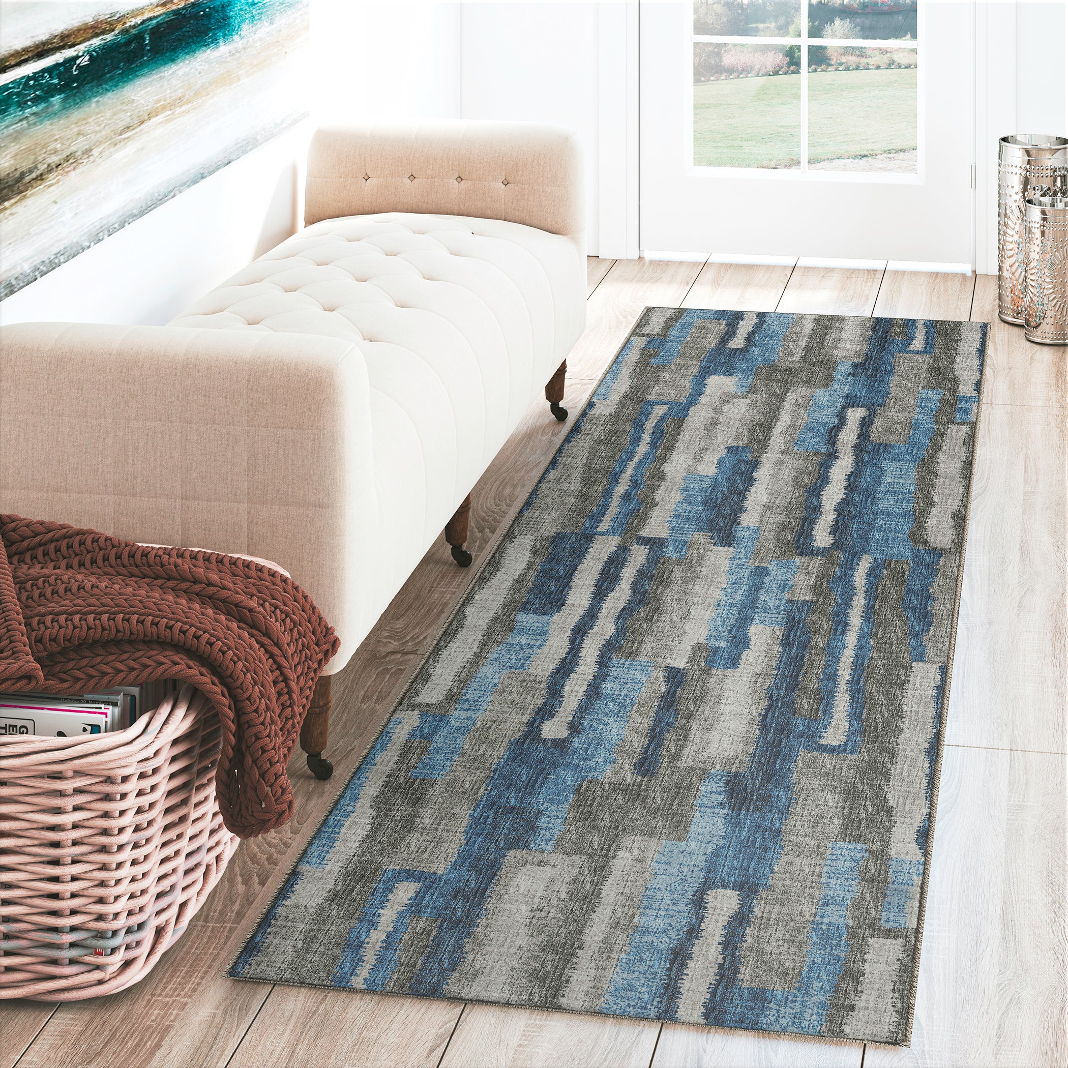 - The Brisbane area rug collection has thirty-seven casual to transitional patterns updated with modern color schemes. The entire family with love these fabulous easy care area rugs. Crafted in the USA using foreign & domestic materials and US labor. 100% polyester flat woven microfiber construction features premium canvas backing.